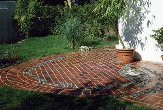 Terrasse aus Klinker mit Granit-Würfel