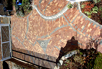 Einfahrt und Sitzplatz aus Klinker gelbbunt mit Granit-Würfel